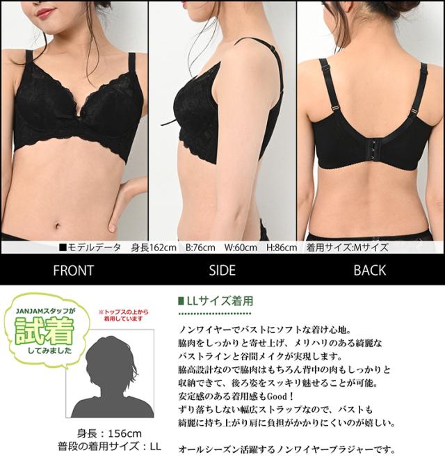 脇高設計なのでカラダにメリハリをつける ノンワイヤーブラジャー。 脇高設計で安定した着用感。 脇肉をしっかり寄せ上げて谷間メイク。 長時間着用していても、窮屈感なく 優しい着心地がずっと続くブラです。 |