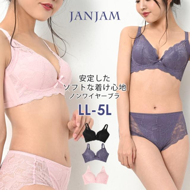 大きいサイズ レディース ブラジャー レース メール便送料無料 リボン ノンワイヤー フルカップ 脇高ブラ ホック調整可能 インナー 下着 LL/3L/4L/5L ゆったりサイズ ぽっちゃり女子 プラスサイズ