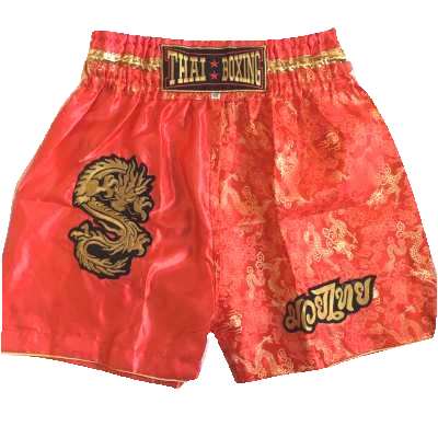 新品 ナイロン 子供用 ムエタイ 龍赤 SSS/SS/S/M/L 選択/キック/ボクシングパンツ/ムエタイ/キッズ用/ジュニア