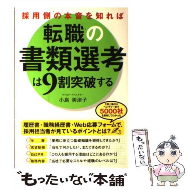 商品名:【中古】 採用側の本音を知れば転職の書類選考は9割突破する / 小島 美津子 / 中経出版 [単行本(ソフトカバー)]【メール便送料無料】
