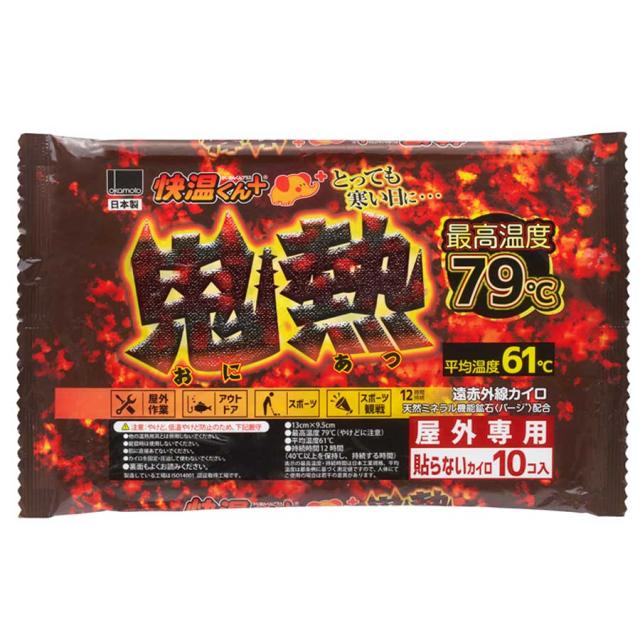 オカモト 屋外専用 貼らないカイロ 快温くんプラス 鬼熱 レギュラー 12時間用 10個入り X5パック