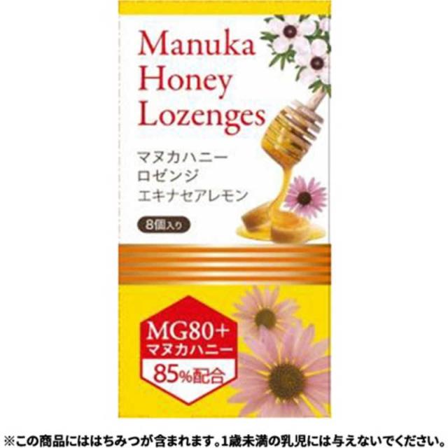 原材料 マヌカハチミツ、マルトデキストリン、レモン濃縮果汁、エキナセアエキス、ステアリン酸カルシウム