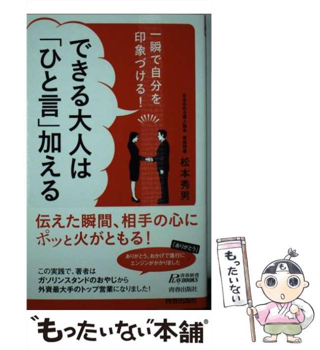 商品名:【中古】 一瞬で自分を印象づける!できる大人は「ひと言」加える (青春新書PLAY BOOKS P-1108) / 松本秀男 / 青春出版社 [新書]【メール便送料無料】
