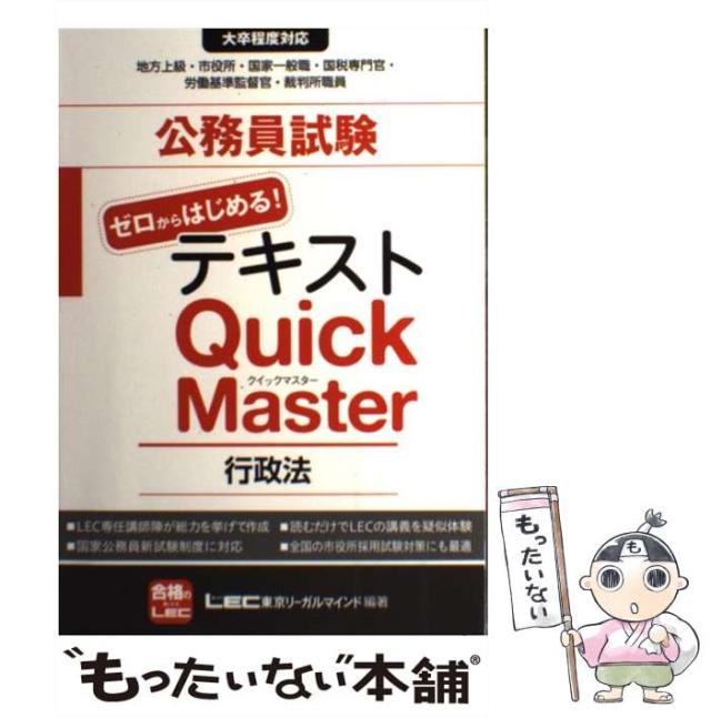 【中古】 公務員試験ゼロからはじめる!テキストQuick Master 大卒程度対応 行政法 / 東京リーガルマインドLEC総合研究所公務員試験部 / 東京リーガルマインド [単行本]【メール便送料無料】