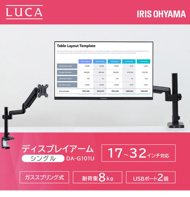 ディスプレイアーム モニターアーム ディスプレイアームシングルUSB付き DA-G101U ブラック アイリスオーヤマ ディスプレイ ディスプレー モニター アーム スタンド 台 USB 固定 デスク 送料無料