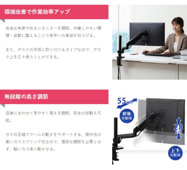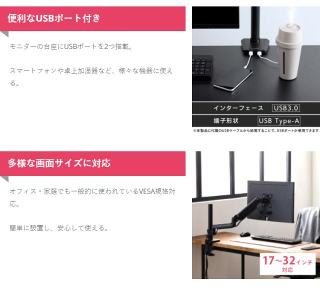 USBポートが付いたディスプレイアーム(シングル)です。