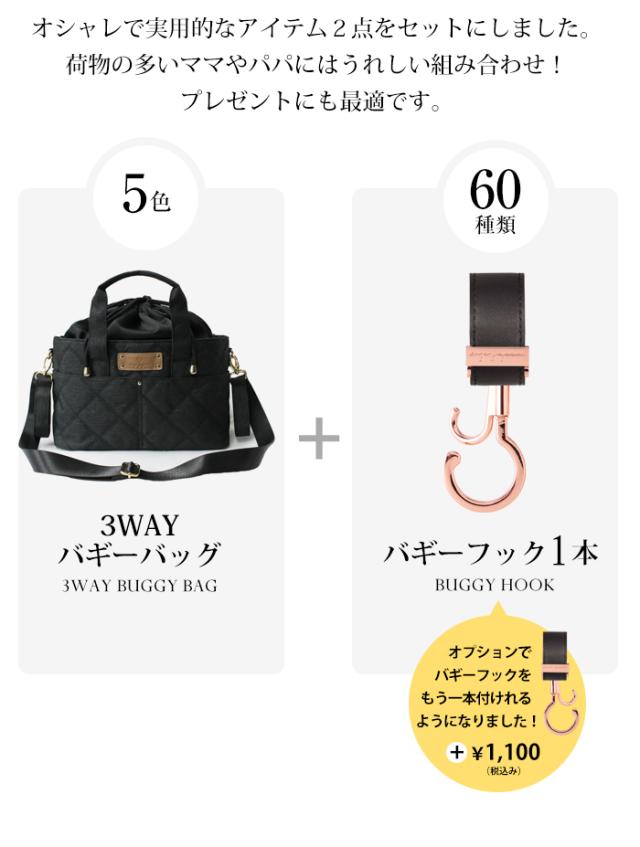 2点セット 3WAYバギーバッグ&バギーフック 全60色 ベビーカーバッグ ベビーカーフック 大容量 軽量 荷物 ミニバッグ ミニトート ギフト 出産祝い クリスマスプレゼント 母の日 母の日ギフト 花以外 e.x.p.japon