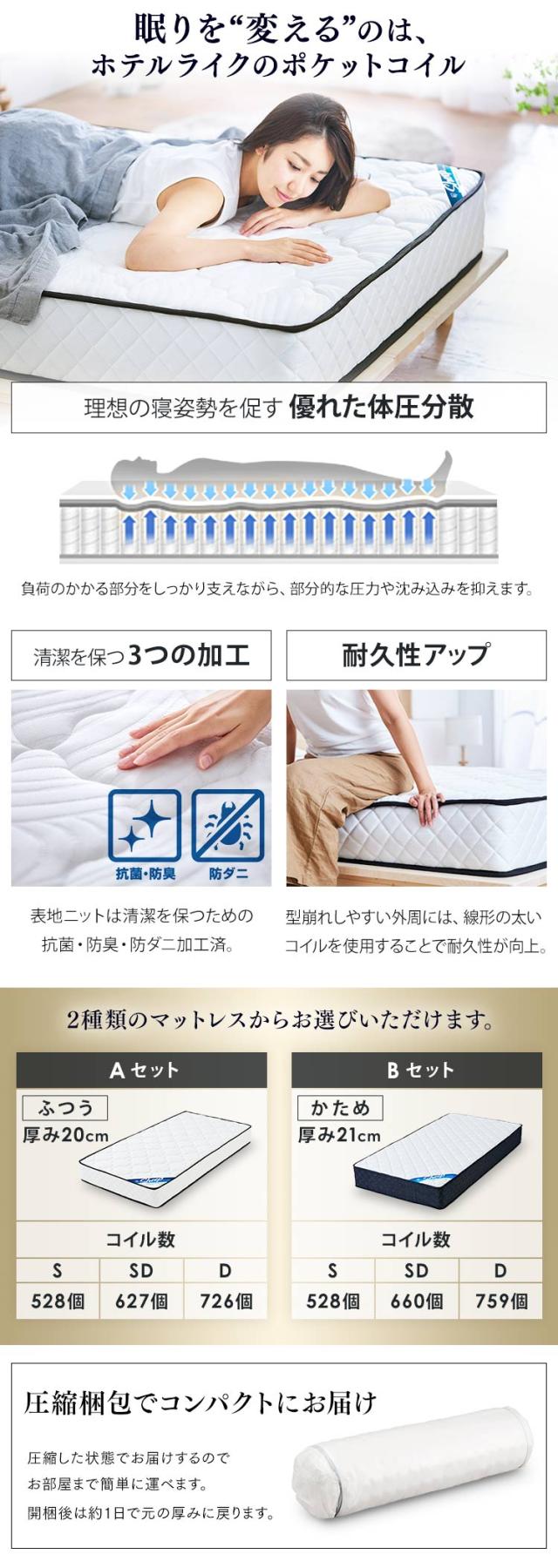 【ポケットコイルマットレス ホワイト PMTS21H-SD】