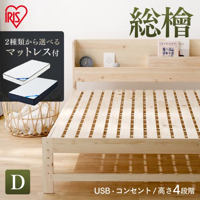 ベッド ダブル マットレスセット ポケットコイル ポケットコイルマットレスセット すのこベッド ひのき 檜 総ヒノキすのこベッドマットレスセット ダブル20cm かため21cm 全2マットレス スノコ ヒノキ 安眠 コイルマットレス アイリスオーヤマ