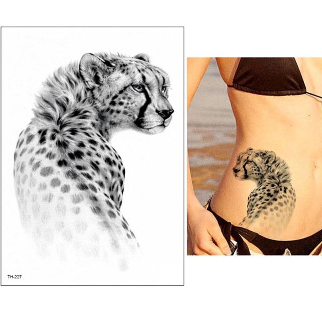 大きいサイズのチーターをモチーフにした水で貼るフェイクタトゥ—ステッカー。