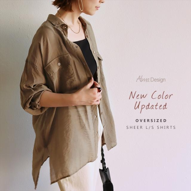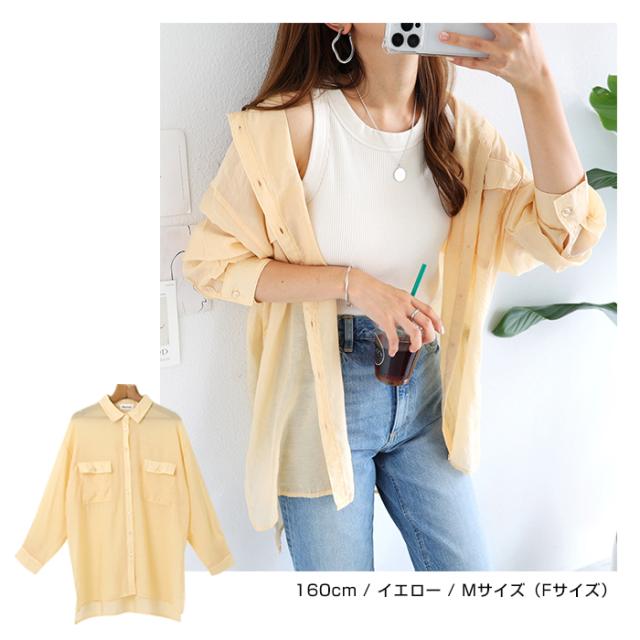 うっすらと透けたシアー感が今年らしい♪オーバーサイズ・シャツが入荷しました。フロントボタン仕様。クシュッとしたシワ感が印象的なワッシャー加工あり。ふわっと軽く、動くたびに揺れるニュアンスがナチュラルで抜け感のある1枚です。変形ネックのインナーを合わせたり、ワイド系ボトムと合わせた自然派コーデにピッタリ!肌寒い日はアウターのインに、暑い日は日焼け対策としても羽織れる今シーズンのオススメitemです♪