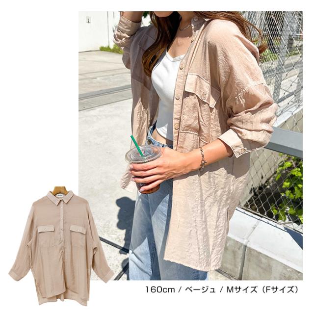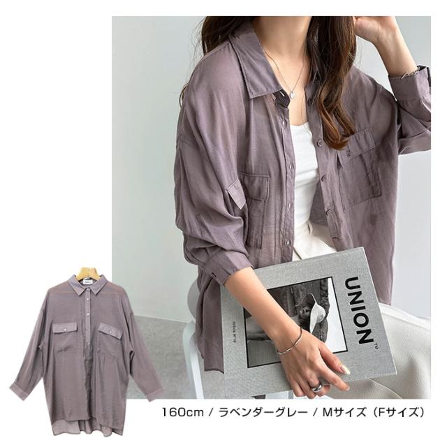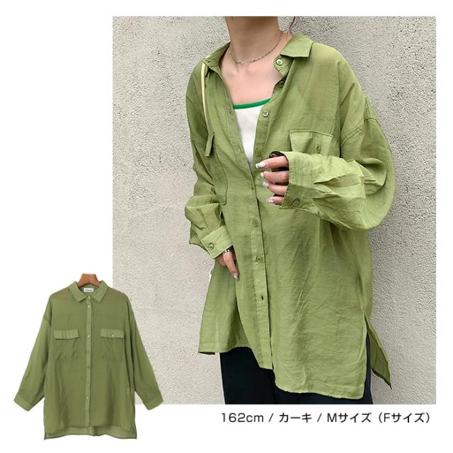 【現品限り】 オーバーサイズ 長袖 シアーシャツ レディース フロントボタン ワッシャー加工 シアー 上品 大人 女性 きれいめ カジュアル ナチュラル オフィス カットソー 女性 トップス シャツ ブラウス ロング 長袖シャツ おしゃれ 春 夏 秋 春夏 送料無料 【mail】