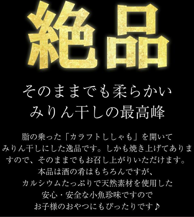 脂がのったカラフトししゃもを開いて味醂干しにした逸品です。焼き上げてあるので、そのままお召し上がりいただけます。