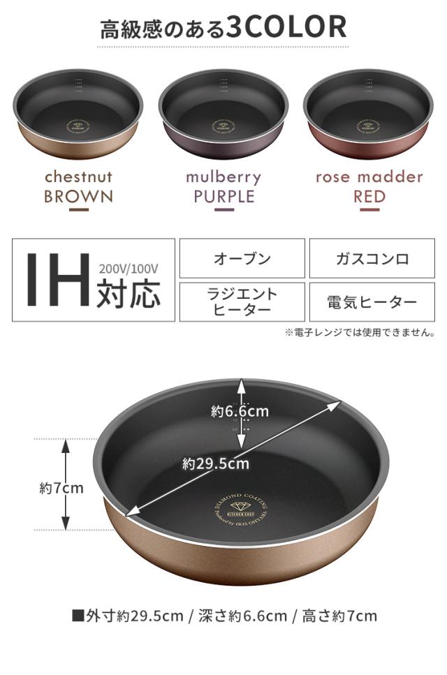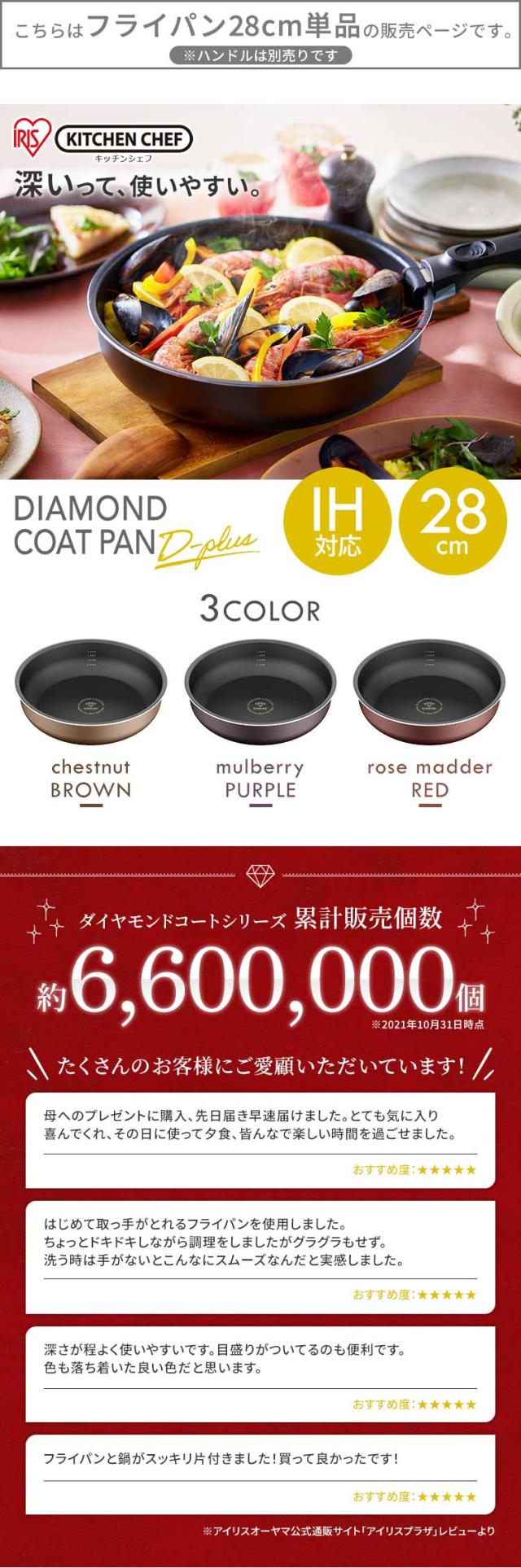 フライパン アイリスオーヤマ IH対応 ガス火 新生活 28cm ダイヤモンドコートパンディープラス PDCI-S28F 全3色 深型 単品 ハンドル別売り ダイヤモンドコート フライパン フッ素 コーティング IH ガス火 ダイヤモンドコート ダイヤモンドコーティング 送料無料 母の日