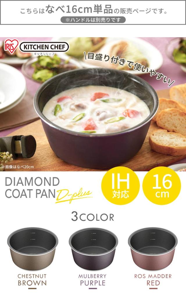 鍋 なべ アイリスオーヤマ IH対応 ガス火 新生活 16cm ダイヤモンドコートパンディープラス 鍋 PDCI-S16P 16cm 全3色 単品 ハンドル別売り ダイヤモンドコート 鍋 なべ フッ素 コーティング IH ガス火 ダイヤモンドコート ダイヤモンドコーティング 送料無料