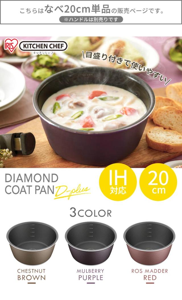 鍋 なべ アイリスオーヤマ IH対応 ガス火 新生活 20cm ダイヤモンドコートパンディープラス 鍋 PDCI-S20P 全3色 単品 ハンドル別売り ダイヤモンドコート 鍋 なべ フッ素 コーティング IH ガス火 ダイヤモンドコート ダイヤモンドコーティング 送料無料