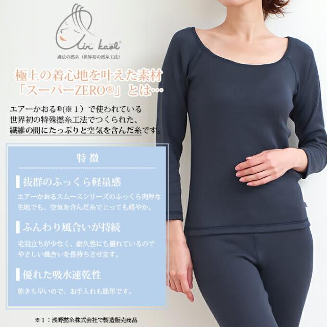 SUBROSA(サブローザ)×エアーかおる シンプル 8分袖インナー ラン型 Uネック 8286rt インナーが見えにくい レディース 女性 インナートップス 肌着 綿 暖か あたたかい 大きいサイズ M L LL 日本製 ストレッチ 秋冬 アンダーウェア 長袖 八分袖 8分丈 8286rt