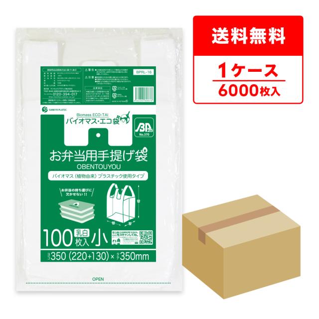 BPRL-16 バイオマスプラスチック使用お弁当用手提げ袋 小サイズ 0.014mm厚 乳白 100枚x60冊/弁当袋 手提げ袋 送料無料