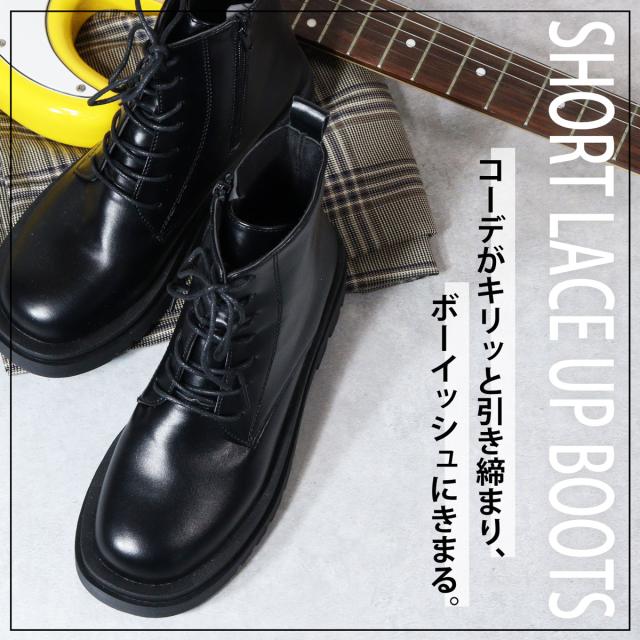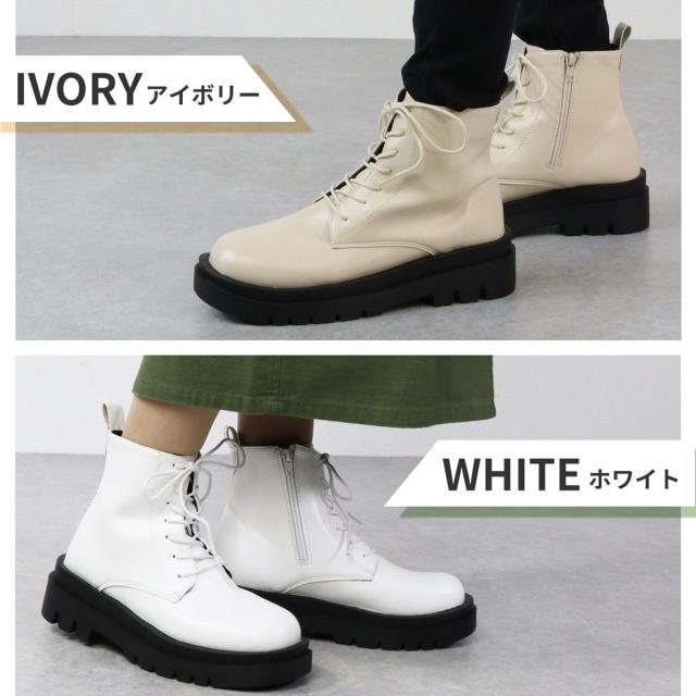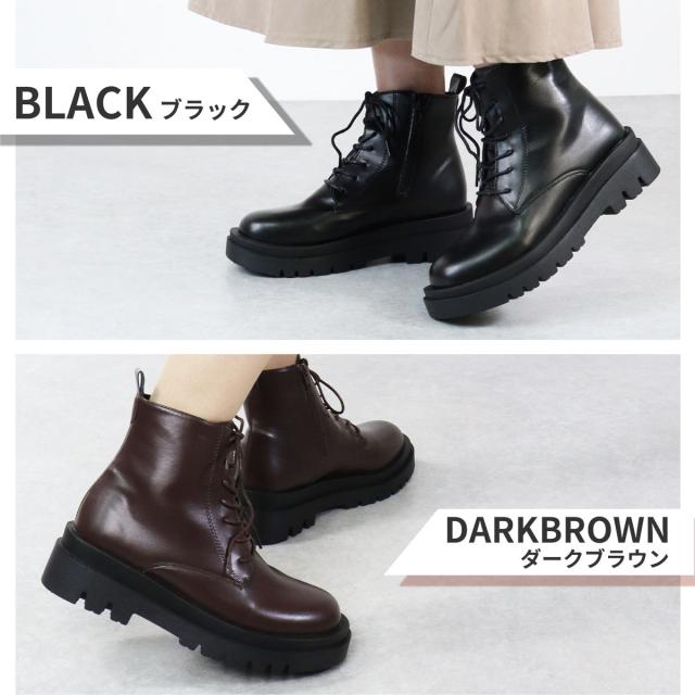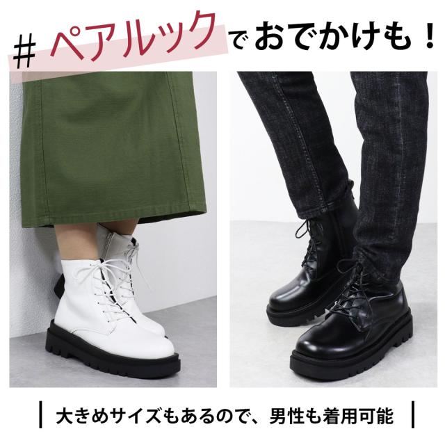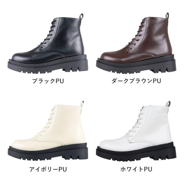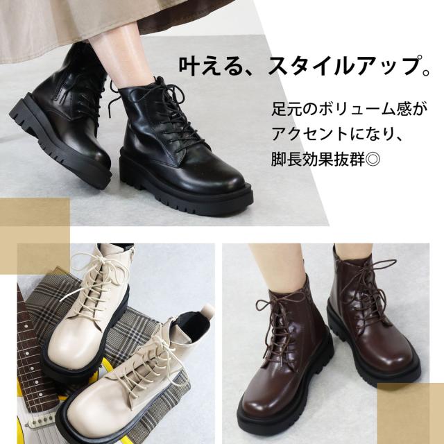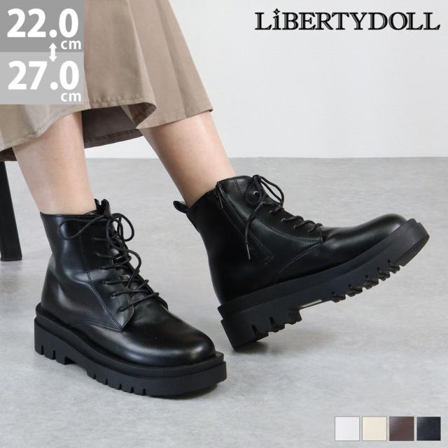 ブーツ レディース 大きいサイズ レースアップ 厚底 5cmヒール サイドジップ 22.0-27.0cm ショート No.9081 リバティードール 黒 ブラック 痛くない 脱ぎ履きしやすい 楽々 茶 ブラウン アイボリー ホワイト 編み上げ 足長 脚長効果 美脚 メンズ ユニセックス 秋 冬 暖かい