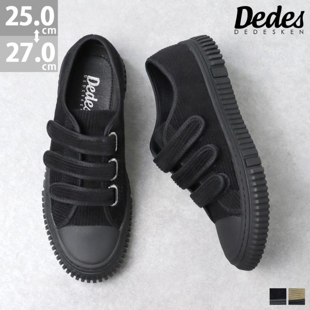 スニーカー メンズ ローカット 紐なし コーデュロイ 3cmソール 調節可能 ベルクロ マジックテープ 3E No.6318 25.0-27.0cm 履きやすい 黒 歩きやすい ベルト カジュアル おしゃれ ブラック ベージュ シンプル 無地 スエード 甲高 幅広 Dedes デデス 20 30 40 50 60 代