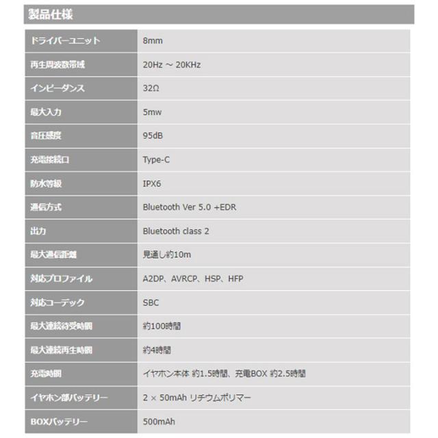 ・イヤホンフル充電で約4時間の連続再生。さらに充電ケースを併用して4回のフル充電が可能。