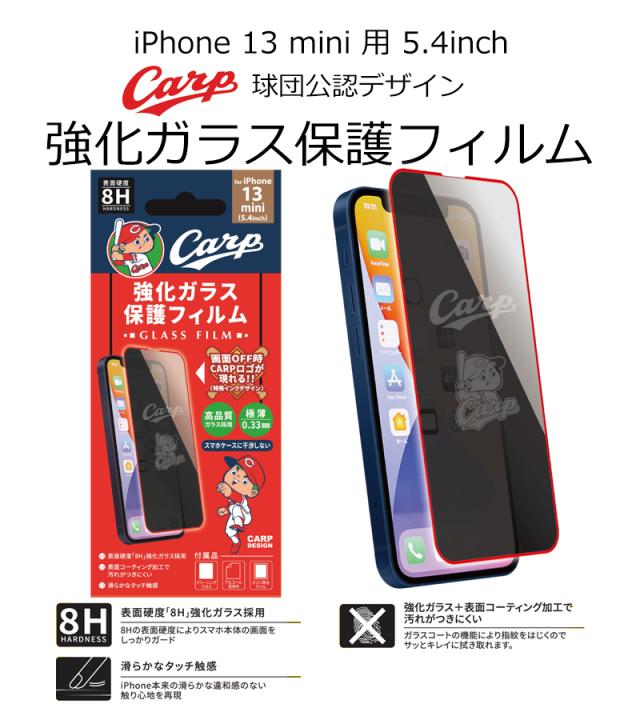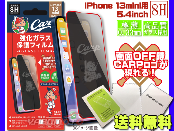 カープ公認デザイン 強化ガラス 保護フィルム iPhone 13mini 5.4インチ 8H 極薄 高品質 コーティング加工 メール便 送料無料