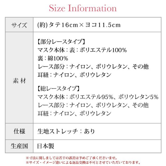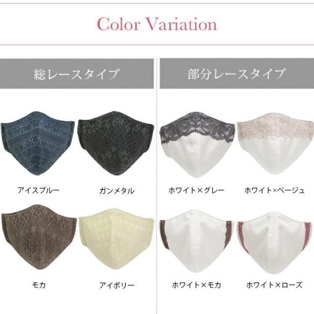 カラーごとにレース柄も違うのでお好みのマスクをお選びいただけます。
