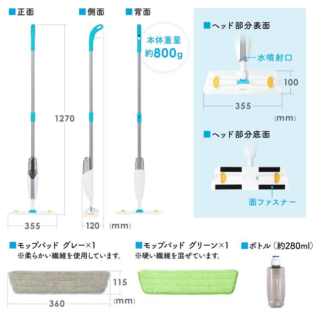 スプレーモップ 水拭き フローリングモップ 床掃除 拭き掃除[200-CD072]