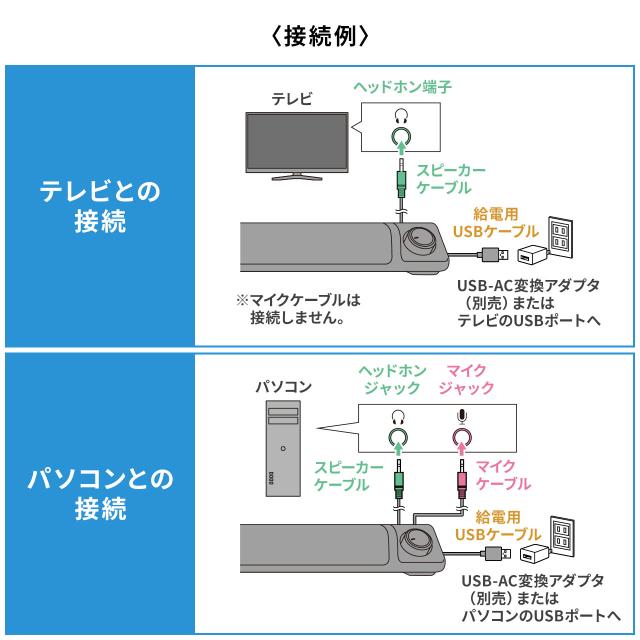 ※本製品にマイクは搭載していません。マイク機能を使用する際は、本体のマイクジャックにマイクやヘッドセットを接続してください。