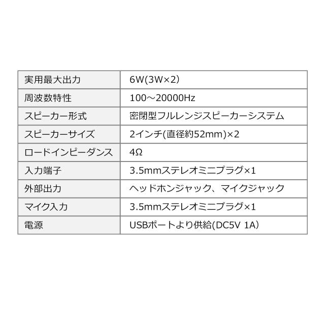 USB電源 サウンドバースピーカー 6W出力 マイク端子 ヘッドホン端子付き[400-SP099]