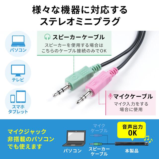 ■対応機種:3.5mmステレオミニジャックを搭載した機器パソコン、テレビ、スマートフォン、タブレットなど