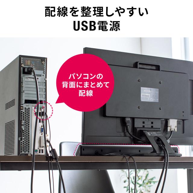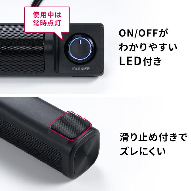 ⇒ご購入の前にご確認下さいパソコン用モニターの下に設置して、迫力あるサウンドを楽しめるサウンドバー。コンセントへの接続が要らないUSB電源タイプ。【WEB限定商品】