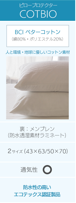 ピロープロテクター COTBIO 43×63cm 50×70cm 枕を汚れから守る 枕カバー 防水枕カバー 防水カバー 防水性 透湿性 ピローケース