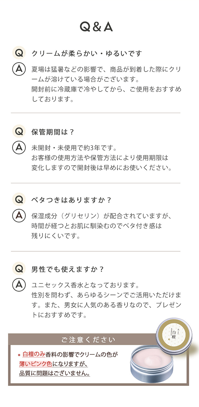 | 注意事項 | 製造時にふたが固く閉められている場合がございます。開けにくい場合は、ゴム手袋を使用するか、ふたに輪ゴムを巻きつけて回すと開けやすくなります。 ・お肌に異常が生じていないかよく注意して使用してください。 ・傷、はれもの、湿疹等、以上のある時は使用しないでください。 ・使用中、または使用後日光に当たって、赤み、はれ、かゆみ、刺激、色抜け(白斑等)や黒ずみ等の異常があらわれたときは使用を中止し、皮膚科専門医等へご相談をお勧めします。そのまま化粧品類の使用を続けますと悪化することがあります。 ・目に入らないように注意し、入った場合はこすらずにすぐに洗い流してください。異物感が残る場合は眼科医に相談してください。 ・使用後は必ずしっかり蓋をしめてください。 ・極端に高温または低温の場所、直射日光の当たる場所には保管しないでください。 ・乳幼児の手の届かないところに保管してください。 ・直射日光の当たるお肌につけますと、まれにかぶれたり、シミになることがありますので、ご注意ください。 |