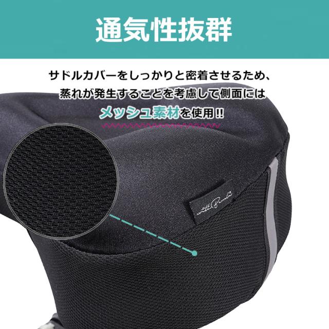 - 通勤用にパナソニック電動自転車ティモSを購入したので長時間乗るならとサドルカバーを購入。クッションも良く、装着も簡単で乗っていてもズレません。雨カバーもあるので助かります。