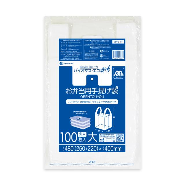 【バラ販売】BPRL-17bara バイオマスプラスチック使用お弁当用手提げ袋 大サイズ 0.014mm厚 乳白 100枚/弁当袋 手提げ袋