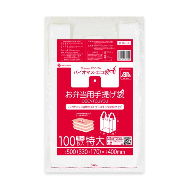 【バラ販売】BPRL-18bara バイオマスプラスチック使用お弁当用手提げ袋 特大サイズ 0.014mm厚 乳白 100枚/弁当袋 手提げ袋