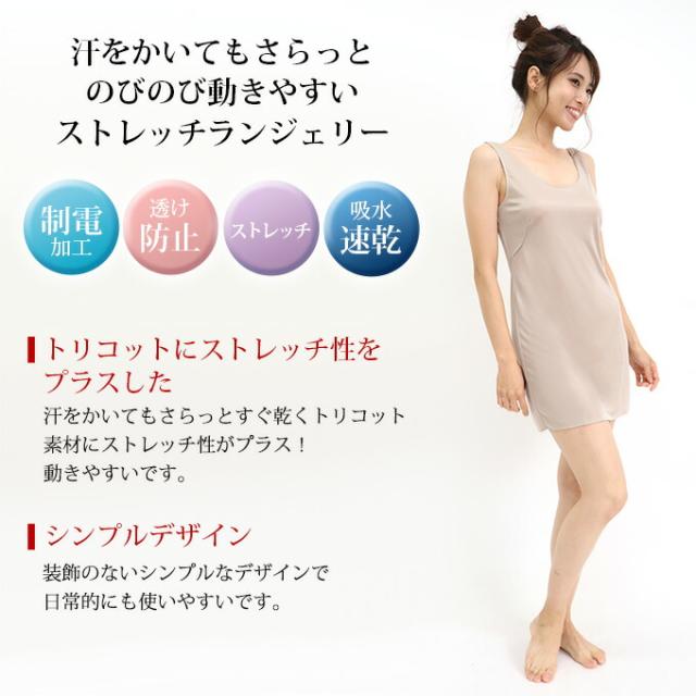 シンプル ストレッチ ランジェリー スリップ ペチコート ワンピース 日本製 定番 ロング丈 80cm 7516rt 大きいサイズ M L LL 黒 下着 レディース インナー チュール 浴衣 SUBROSA ペチコートワンピース ハーフ レース 透け防止 肌着 下着透け対策 サテン 静電気防 7516rt