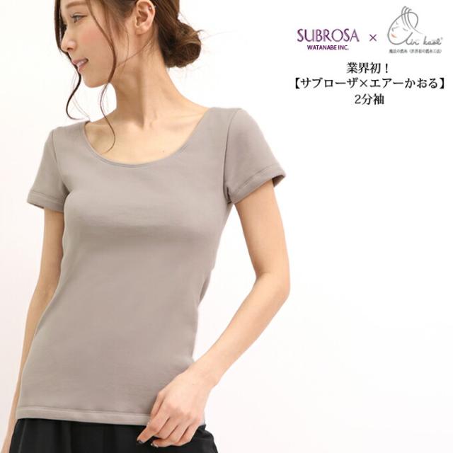 SUBROSA(サブローザ)×エアーかおる シンプル ラン型 Uネック インナー シャツ トップス 8439rt レディース 女性 インナートップス 肌着 無地 綿 吸水性 暖かい 大きいサイズ M L LL 日本製 ストレッチ 春 夏 秋 冬 アンダーウェア 半袖 インナーシャツ 渡辺商 8439rt