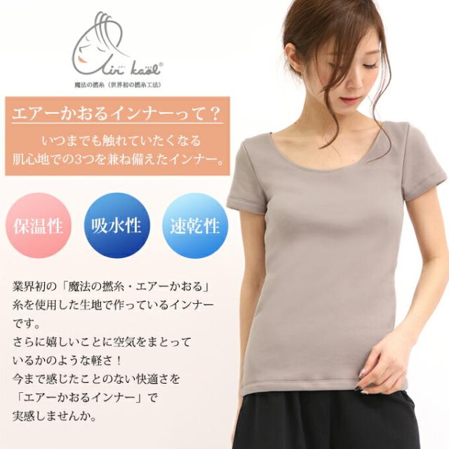 業界初の「魔法の撚糸・エアーかおる」糸を使用した生地で作っているインナーです。いつまでも触れていたくなる肌心地で3つの機能を兼ね備えています。保温性、吸水性、速乾性さらに嬉しいことに空気をまとっているかのような軽さ!今まで感じたことのない快適さを「エアーかおるインナー」で実感しませんか。