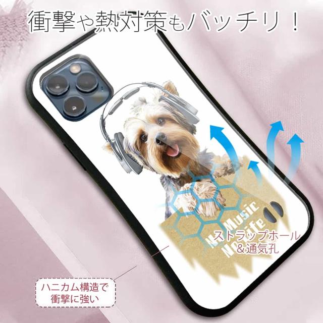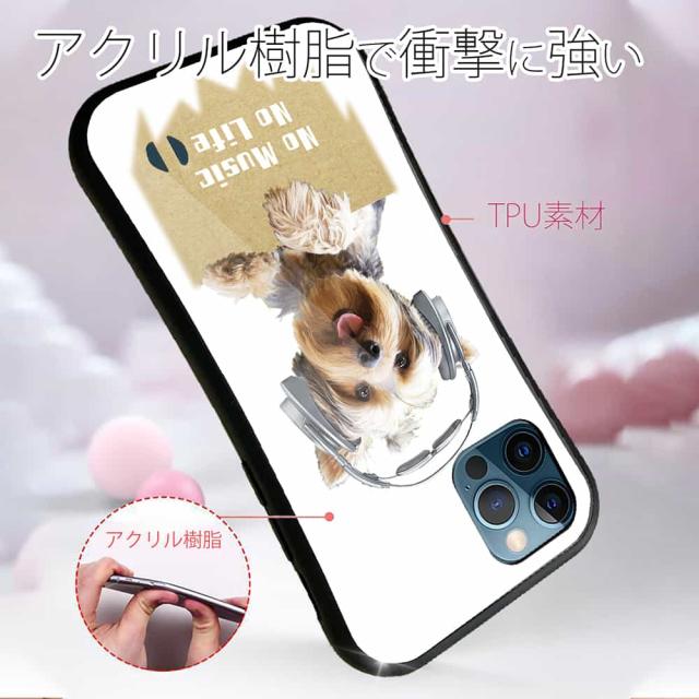| 商品説明 | 落下や衝撃に強いTPUケース+綺麗に印刷できるアクリル板でプリント。「No Music」シリーズ。ヨークシャーテリアだって。 |