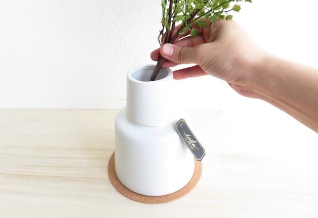 グリーンととポットは固定されていないので、ポットをセット後にグリーンを差し込んでください。茎や葉の向きをやさしく曲げて全体の形を微調整すれば完成です。 |