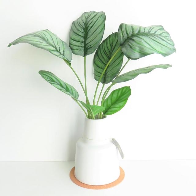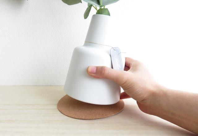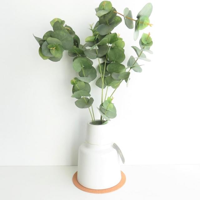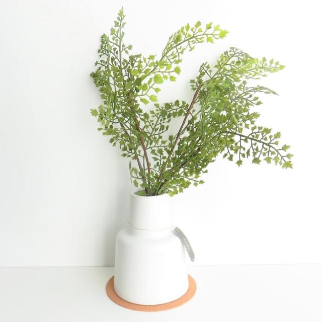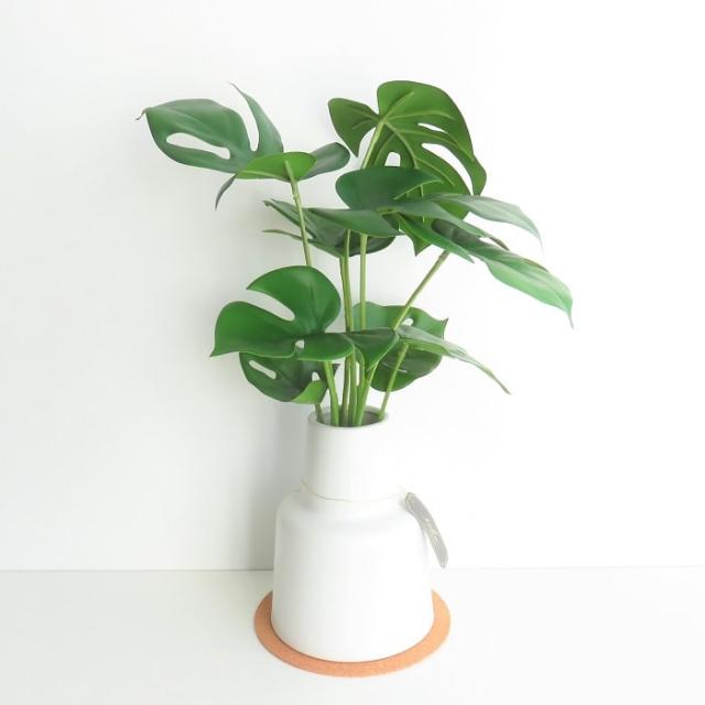 クッション性のあるナチュラルな色味のコルクコースター付き。目立ち過ぎずに主役のグリーンをうまく引き立たせ、ホワイトポットとの相性も抜群です。 |