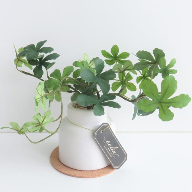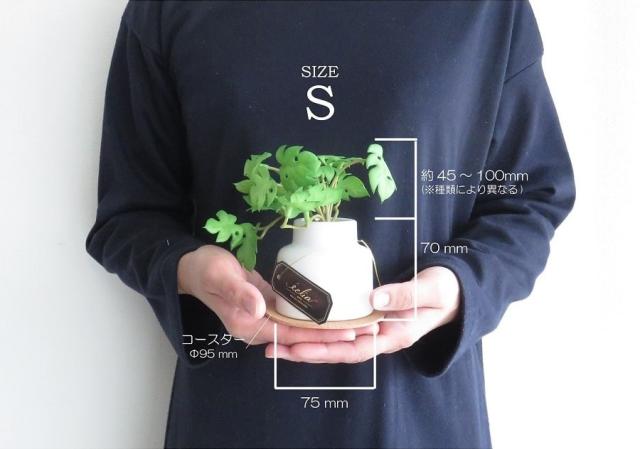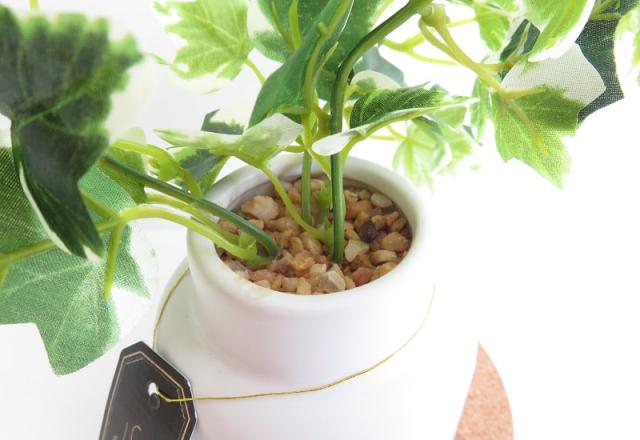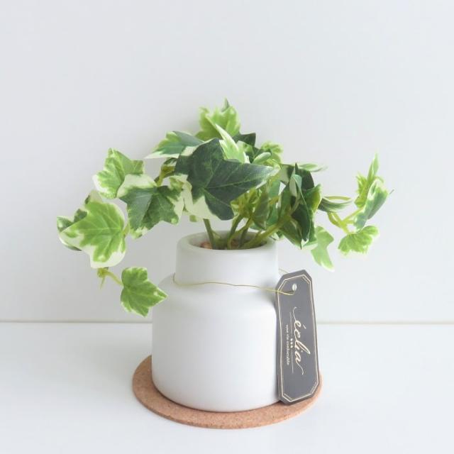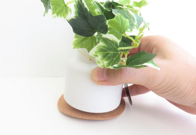 クッション性のあるナチュラルな色味のコルクコースター付き。目立ち過ぎずに主役のグリーンをうまく引き立たせ、ホワイトポットとの相性も抜群です。 |