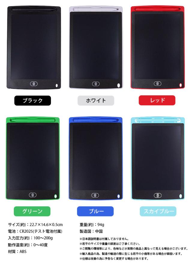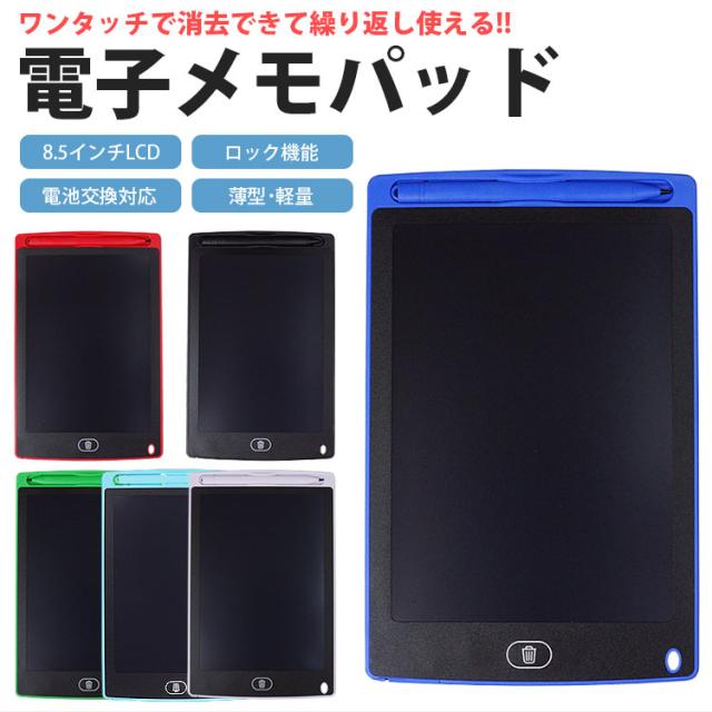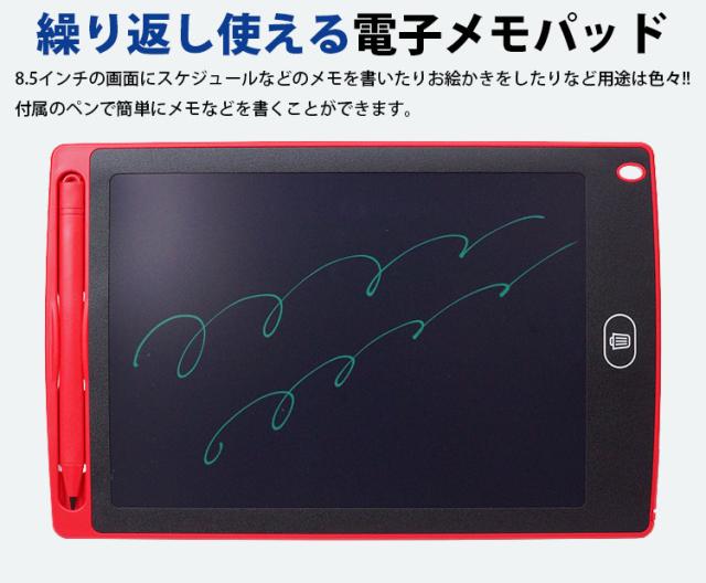 電子メモパッド 8.5インチ 感圧式 LCD 液晶 消去ロック機能 電池交換対応 メモ帳 メッセージ ボード 伝言板 繰り返し PR-LCDPAD02【メール便 送料無料】