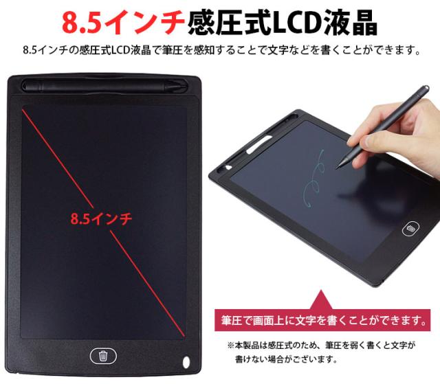 8.5インチの感圧式LCD液晶で筆圧を感知することで文字などを書くことができます。