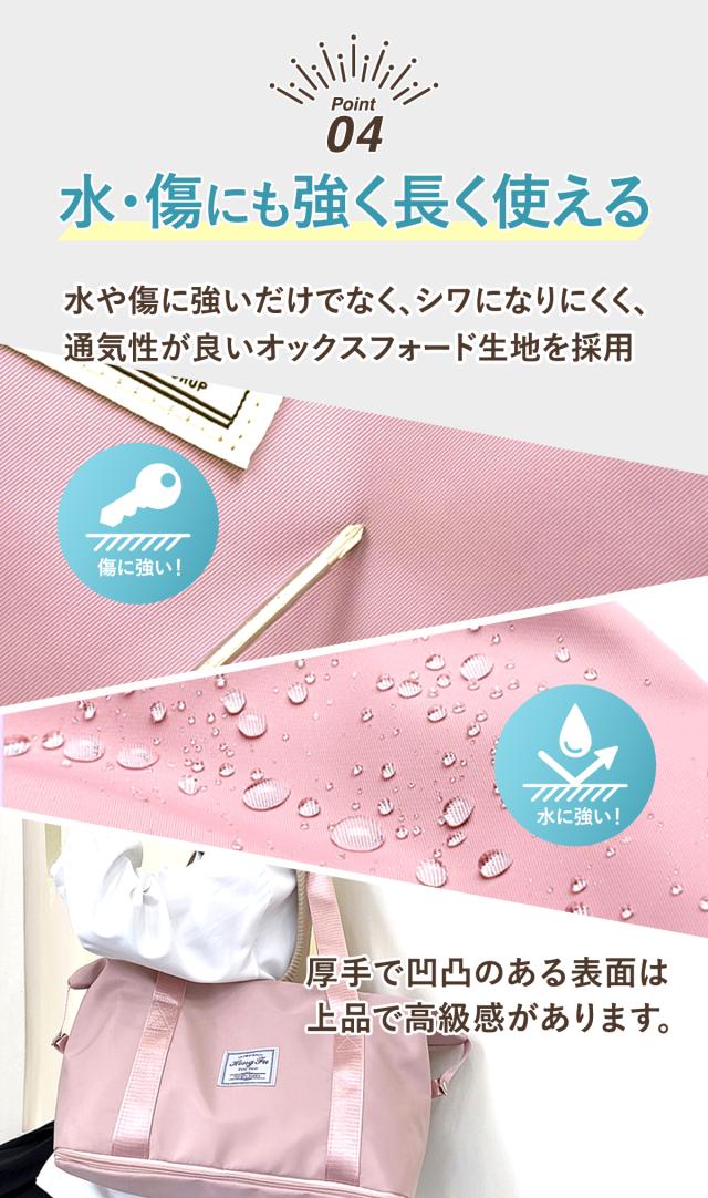 ・濡れたタオル、汗のついた衣類、洗面用具を入れることができ、お手入れが簡単で清潔に保てます