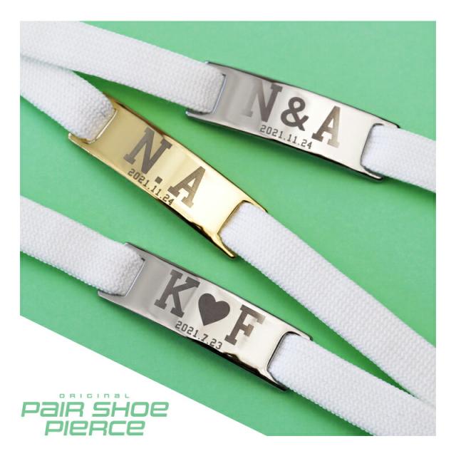 シューズをお洒落にドレスアップ♪ 足元を飾るシューアクセ。 ふたりのイニシャルを刻んだオリジナルデザイン。 絆がより深くなるペアギフトです。 1. 手軽でおしゃれ!シューズ専用のアクセサリー シューピアスとは、シューレース(靴紐)に通すだけで靴をお洒落にカスタマイズできるシューズ専用のアクセサリー。 スニーカー、ドレスシューズ、ブーツ でも紐が付いている靴ならなんでもOK! 手軽にカスタムできて、自分だけの個性が出せる注目のファッションアイテムです。 付け方は簡単! シューピアスの穴に靴紐をくぐらせたら、 スニーカーの正面にシューピアスが来るように移動させます。 あとは、普段通りに紐を通せば完成です。 普段愛用しているシューズが、新しく生まれ変わって気分もUP♪ 「スニーカーをいつもと違った雰囲気で履きたい」 「シューズを自分らしくアレンジしたい」 という方にぴったりのアイテムです。 ステンレス だから錆びにくく、 汚れたときも、サッと水洗いできるからお手入れ簡単。 丈夫で傷がつきにくいので、永くお使いいただけます。 2. 周りから気づかれない 秘密のペアアクセサリー カップル 恋人 夫婦 にとって、 二人の絆の証のような ペアアイテム 。 憧れてはいるけれど、 「指輪やネックレスは普段付けないし…苦手…」 「人目に付くのは恥ずかしいし…抵抗がある…」 という方も多いのではないでしょうか? シューピアスなら、足元にさりげなく身につけることが出来るから、 人に気付かれることなく お揃い を楽しめます。 ・ ゴールド ・ シルバー それぞれ2個ずつセットでお届けします。 色違いで身につけたり、アシンメトリーで ペアコーデ しても◎! バレない ペアアクセ は、まるで二人だけの秘密のよう。 離れていてもお互いを近く感じられ、 パートナー への想いがよりいっそう深まることでしょう。 3. イニシャル・日付 彫刻 シューピアスには、二人のイニシャルを一文字ずつと、お好きな日付を彫刻いたします。 【 イニシャル彫刻 】 二人のイニシャルを繋いで 刻印 すれば、 「ずっと一緒」の想いがカタチになった、オリジナルシューピアスの完成です。 特別感たっぷりだから、永く愛着を持ってお使いいただけます。 刻印入りのアクセサリーは大切な人に気持ちを伝えるのにぴったりなおくりもの。 私たちは、贈られた人も贈った人もみんなが笑顔になれる商品をお届けします。 【 日付 】 日付が入ることで目にするたびに記憶がよみがえる特別なプレゼントに。 思い出に残したい日付をご指定下さい。 ≪こんなシーンにおすすめ≫ ・ 中学生 高校生 大学生 の 学生 カップルに ・ シンプル な ペアグッズ をお探しの大人の男女に ・ 奥さま 旦那さま への 結婚記念日 の贈り物として ・ 彼氏 彼女 への クリスマス バレンタイン ホワイトデー のプレゼントに ・ 友人 同士で おそろいコーデを楽しみたい方へ |