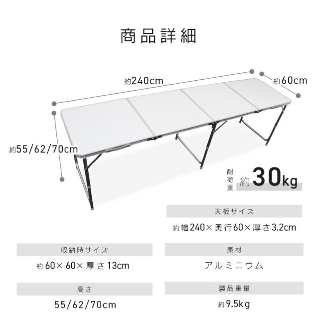 アウトドア テーブル 折りたたみ テーブル レジャーテーブル MERMONT ピクニックテーブル アウトドアテーブル 幅240cm 大人数 軽量 アルミ 折りたたみテーブル ローテーブル ロースタイル 高さ調節 お花見 キャンプ バーベキュー BBQ WEIMALL