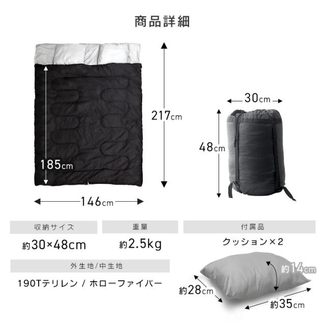 寝袋 2人用 コンパクト 洗える シュラフ 封筒型 耐寒温度-4度 ダブル 大きい サイズ ワイド ふんわり暖かい ベランピング 車中泊 ファミリー キャンプ アウトドア 防災 避難用 おうちキャンプ ツーリング オールシーズン MERMONT WEIMALL